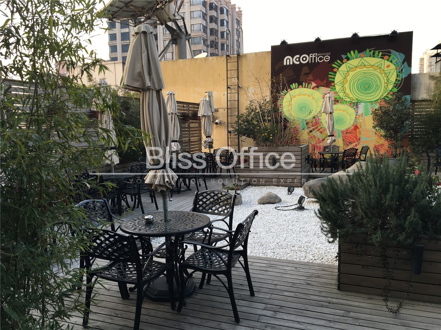69間可容納1至12個工作位的獨立服務式辦公室內置輕奢咖啡區、商務洽談區、獨一無二空中露天花園