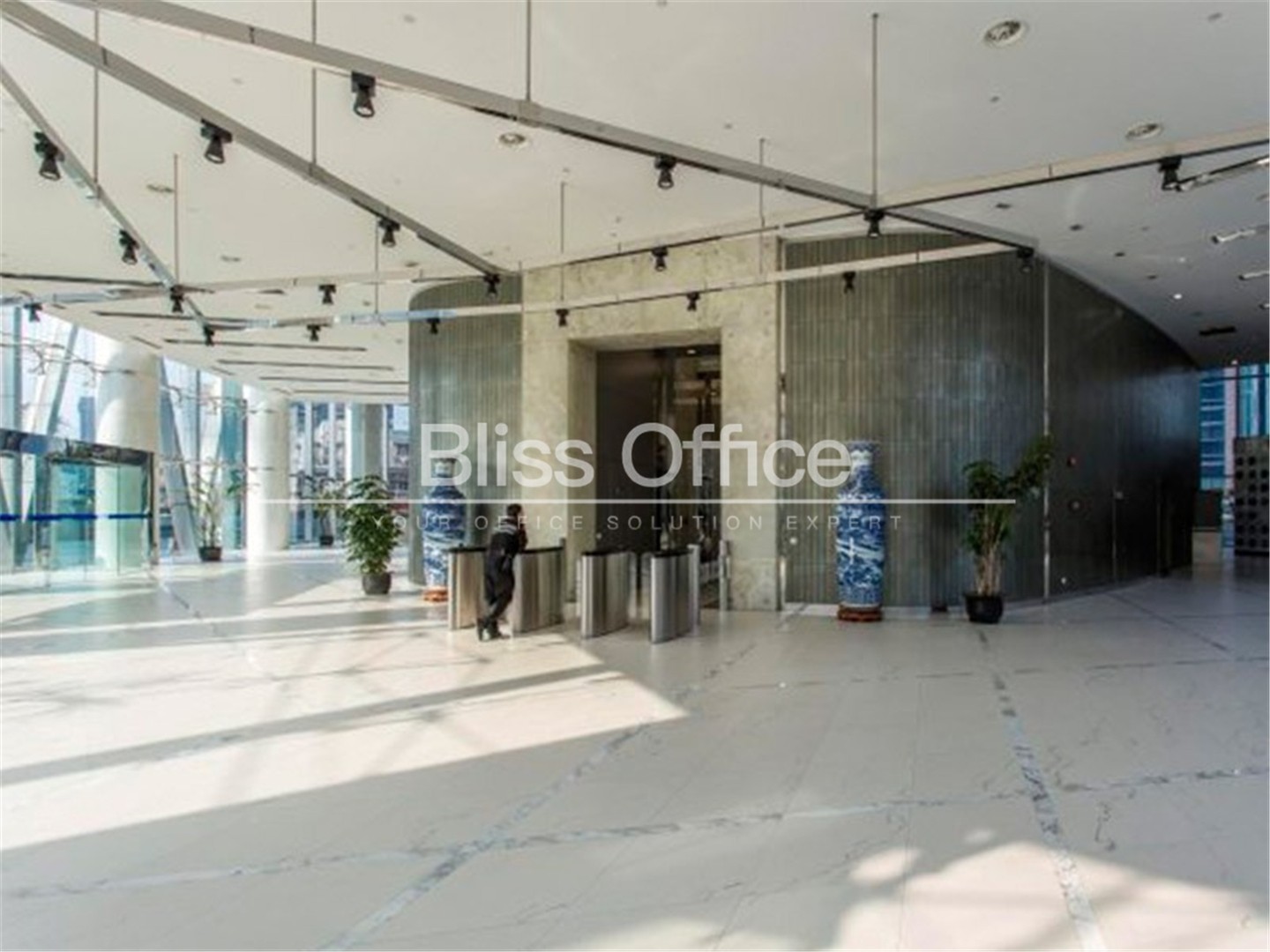 該大廈是上海國際客運中心的辦公樓項目,與水滴型的候船廳成為北外灘的標誌性建築。大廈為全裝修交房,從地板、吊頂到地毯、家具都一應俱全,對辦公環境無特殊要求的企業,拎包即可入駐,整層麵積約1500㎡,租金按套內麵積計算,性價比較高。