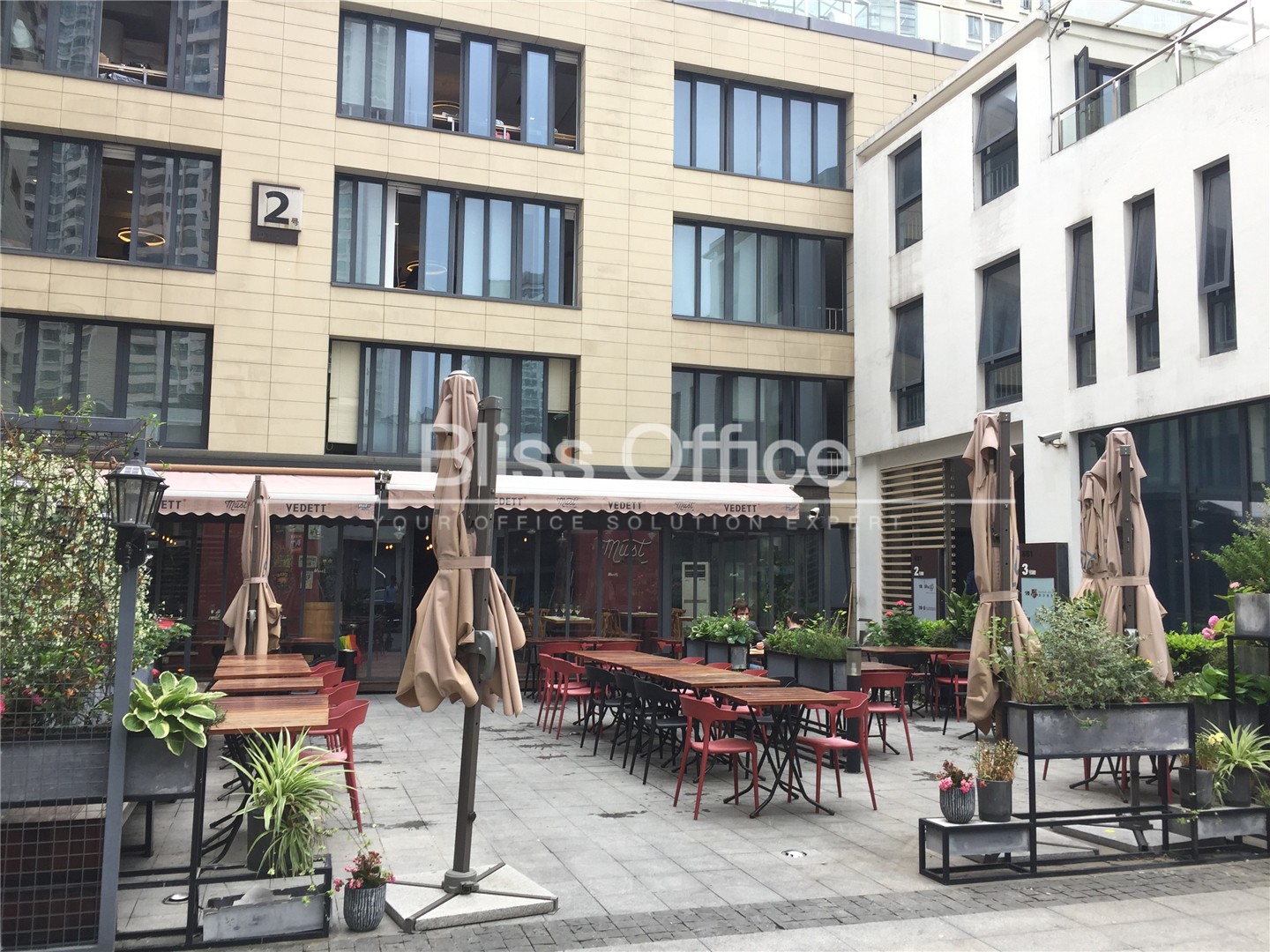 開倫•881園區位於上海市靜安區武定路881號,毗鄰南京西路、靜安寺兩大商圈,距軌道交通2號線靜安寺站步行約12分鍾,距7號線昌平路站步行約8分鍾。園區前身為上海造紙公司日常經營駐地,占地麵積3407平方米,總建築麵積6588平方米,由5幢高低錯落的辦公樓半圍合而成,年代不同、風格各異、體量不一的建築經過重新設計和包裝,既保留了各自的原有特色,又構成了一個和諧的整體。1至4號樓圍合而成的內庭、5號樓與樓群之間形成的後院成為園區景觀設計的核心區域,通過放大、強調內庭和後院的休閑與連接功能,結合建築底層商業休閑設施的設置,使景觀、休閑空間和現代化的辦公環境相互交融,在繁華喧鬧的靜安區核心地段打造出一個以圍合式庭院為特色、鬧中取靜、幽雅私密的創意商務空間。