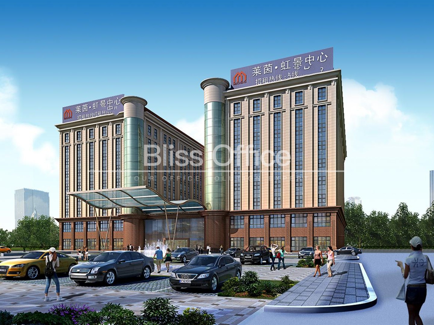 萊茵虹景中心項目為花園式辦公配套,門口超大露天綠化廣場,雙子之間設置花園連廊。