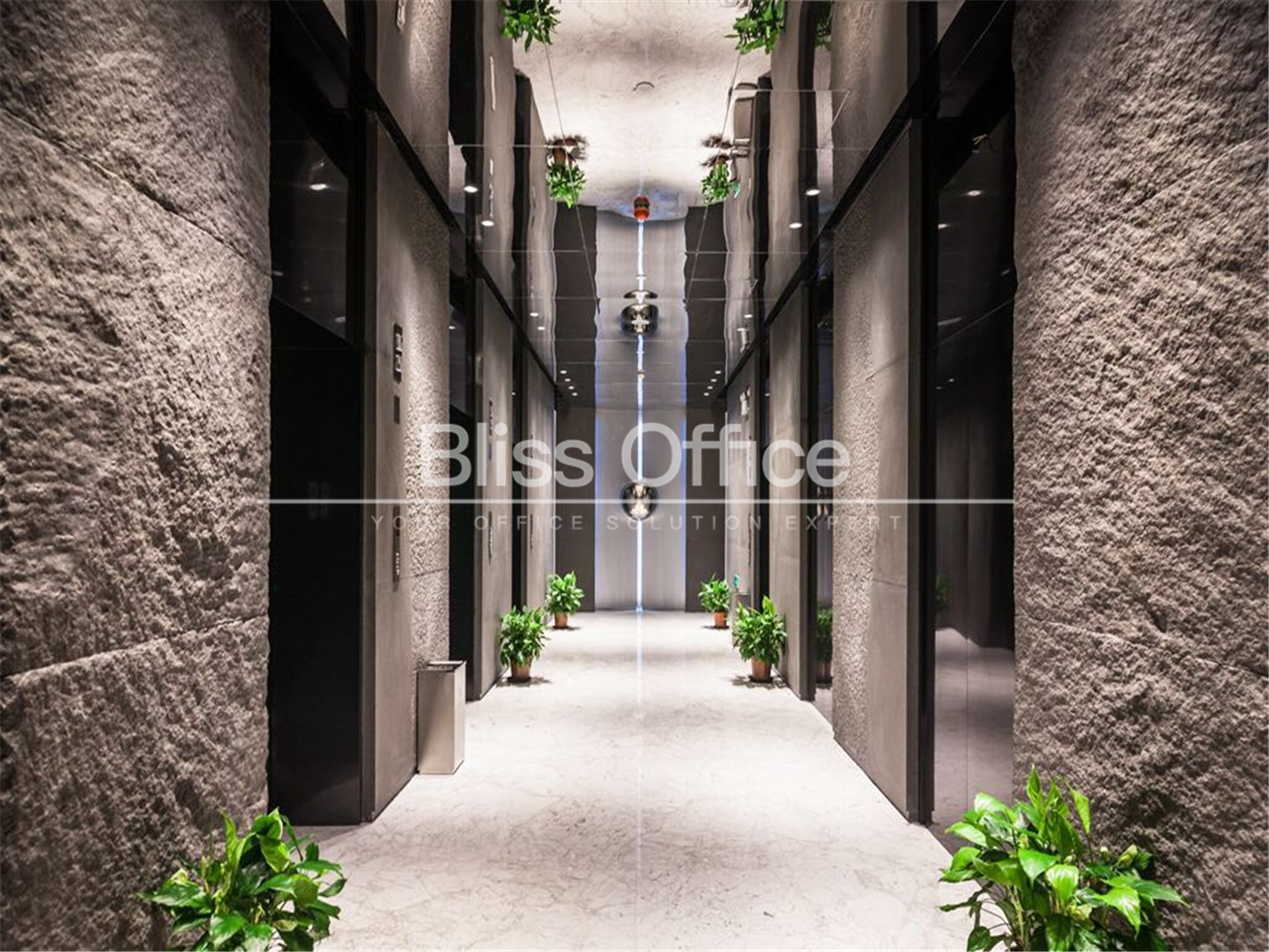大樓外形采用銀色玻璃幕牆裝飾,簡潔流暢,大堂挑空2層設計,內部裝飾大理石花崗岩牆麵地磚,黑白相間的大理石鋪砌營造大氣清新的建築風格,大堂牆麵大大的淡藍色logo個性鮮明並具設計感。